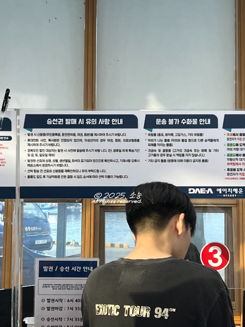 출항 1시간 전까지는 반드시 도착해야 하고,