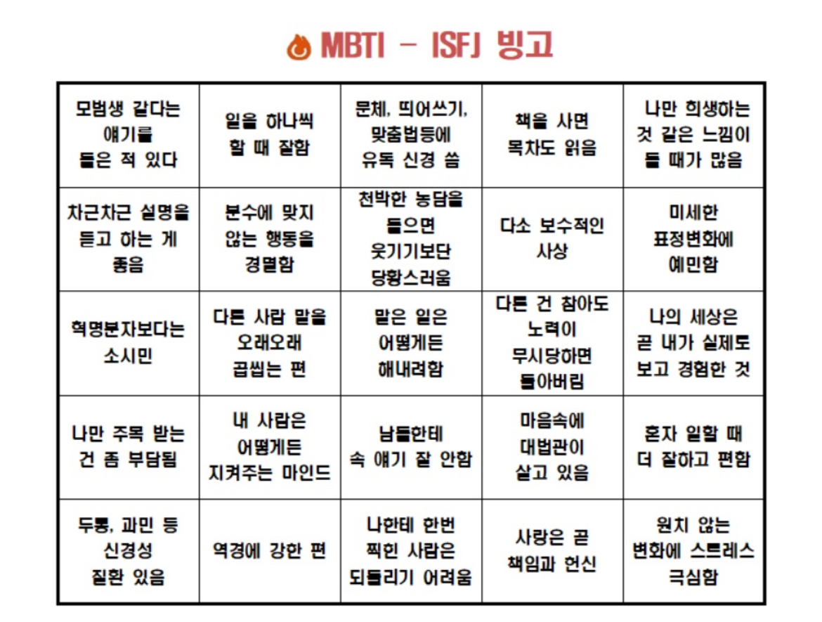 ISFJ는 정말 잘 맞는듯, 아닌듯.