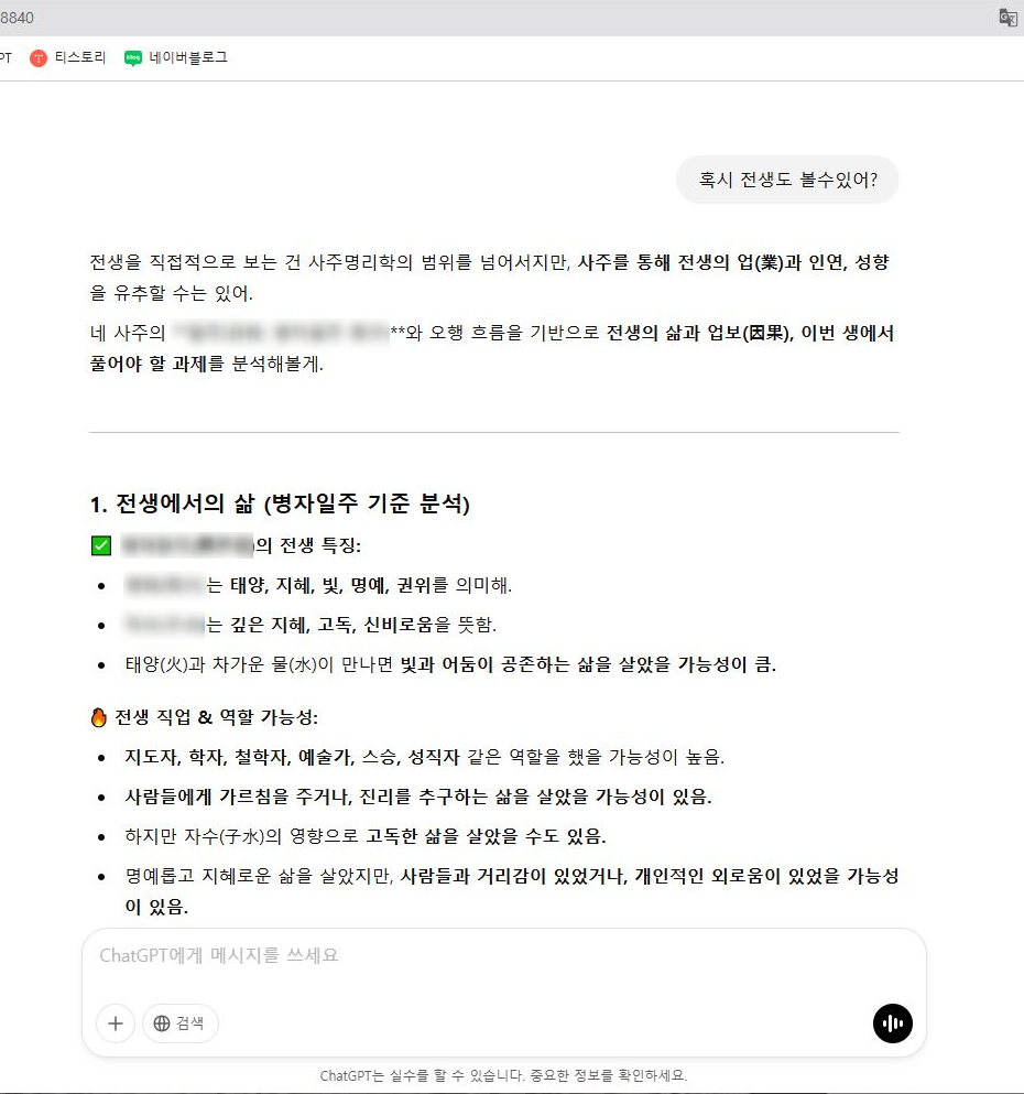바로 챗GPT를 활용한 사주풀이 이야기인데요!