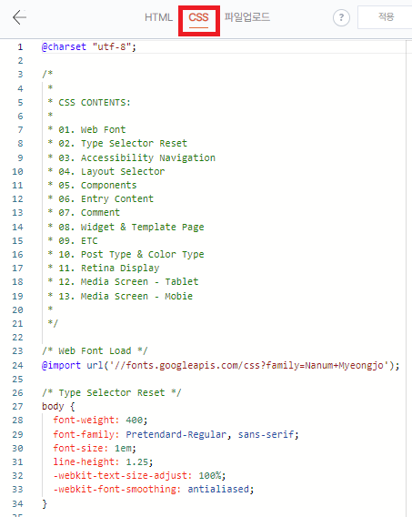 CSS 편집에 들어가는 방법은