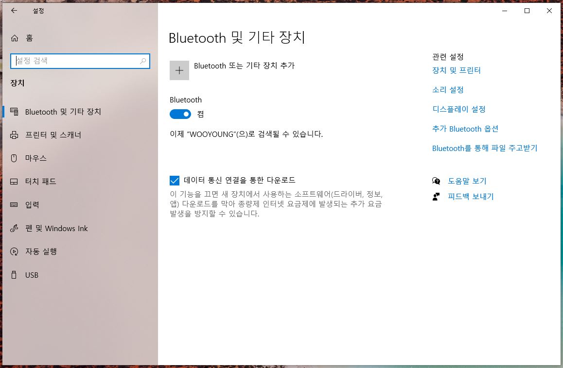 1️⃣ Windows에 블루투스가 켜져 있는지 확인합니다.